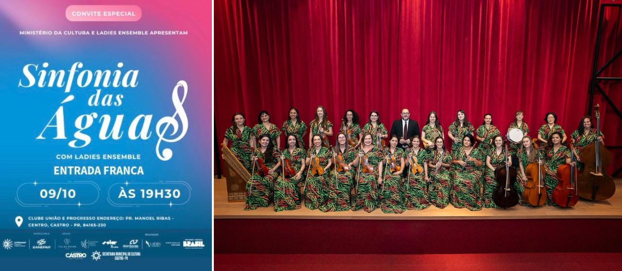 A magia da música vai tomar conta de Castro em uma noite especial. No dia 9 de outubro, às 19h30, o grupo Ladies Ensemble apresenta o espetáculo “Sinfonia das Águas” no Clube União e Progresso, com entrada gratuita.