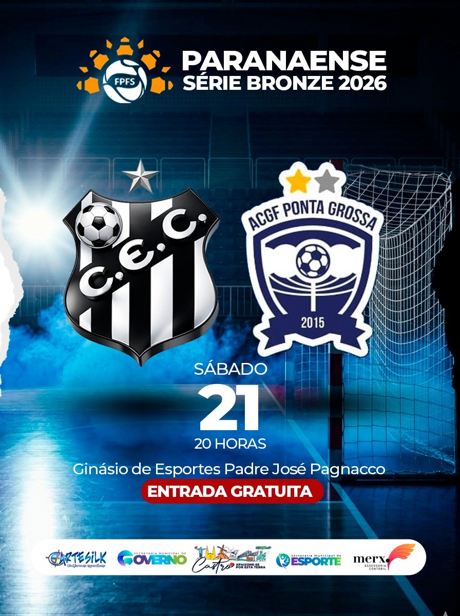 Após uma estreia convincente, o Caramuru Futsal volta à quadra neste sábado (21), às 20 horas, no Ginásio de Esportes Padre José Pagnacco, em Castro, para mais um desafio pelo Campeonato Paranaense de Futsal – Série Bronze 2026. O adversário da vez é o ACGF Ponta Grossa, em partida com entrada gratuita.