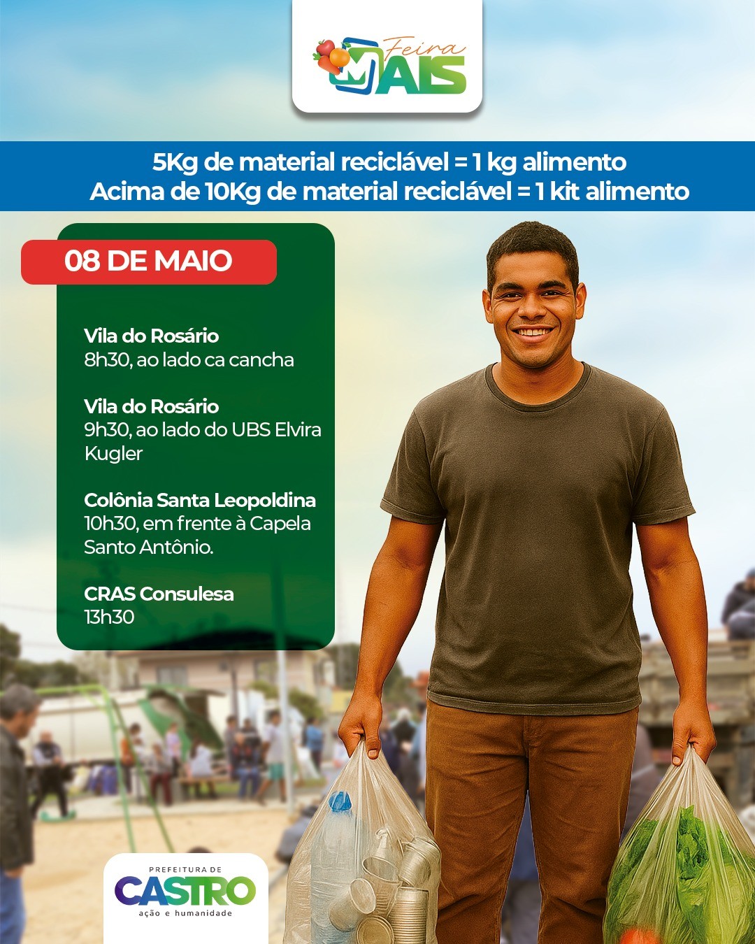 O Programa Feira Mais deu mais um passo importante em Castro ao incorporar oficinas educativas voltadas à saúde e à preservação do meio ambiente. A primeira ação neste formato foi realizada na última sexta-feira (24), na Vila Operária, durante a troca de materiais recicláveis por alimentos.